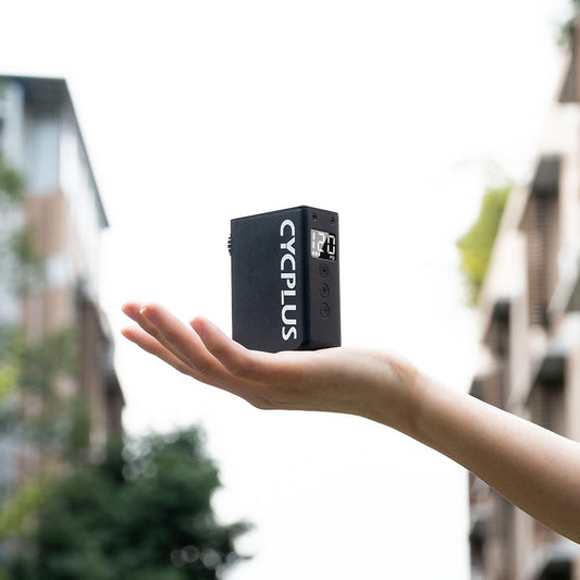 Cycplus CUBE. Pesa apenas 205g, se carga por USB tipo C, y cabe en la palma de tu mano. Una verdadera solución para salir de la baja de presión en tus llantas!!! 4 llantas con una carga, 7L/Min